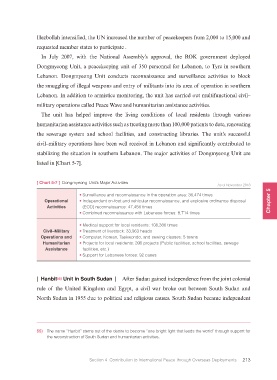 stabilizing the situation in southern Lebanon. The major activities of Dongmyeong Unit are