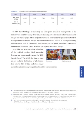 servicemembers, such as Korean beef, ribs, abalones, and octopuses, and tested 16 new items