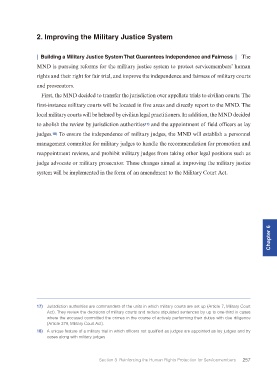 judges. 18) To ensure the independence of military judges, the MND will establish a personnel