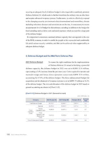 defense capacity, the defense budget in 2021 was set at KRW 52.8 trillion,