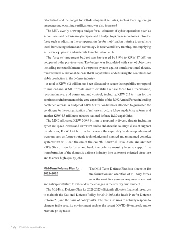 The MND allocated KRW 209.9 billion to respond to diverse threats including