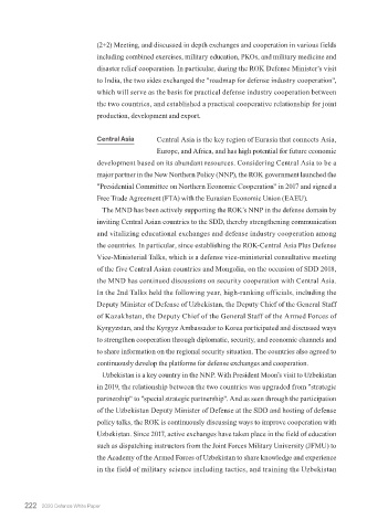 the countries. In particular, since establishing the ROK-Central Asia Plus Defense