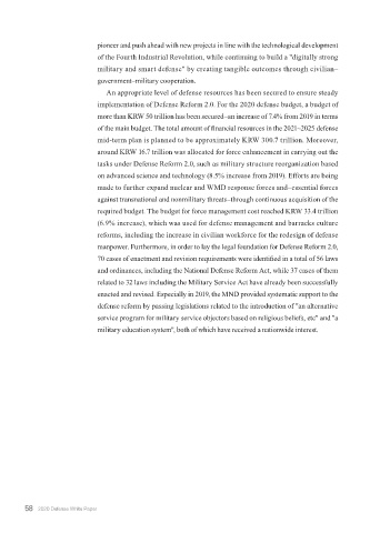 implementation of Defense Reform 2.0. For the 2020 defense budget, a budget of